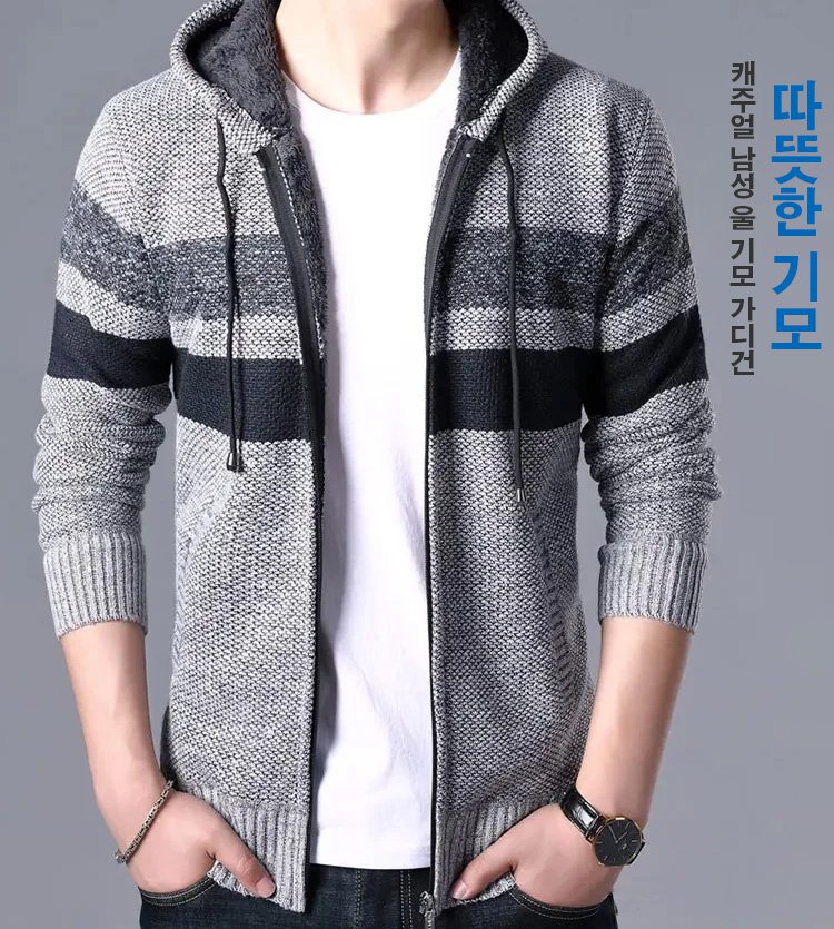 캐주얼 남성 울 기모 가디건